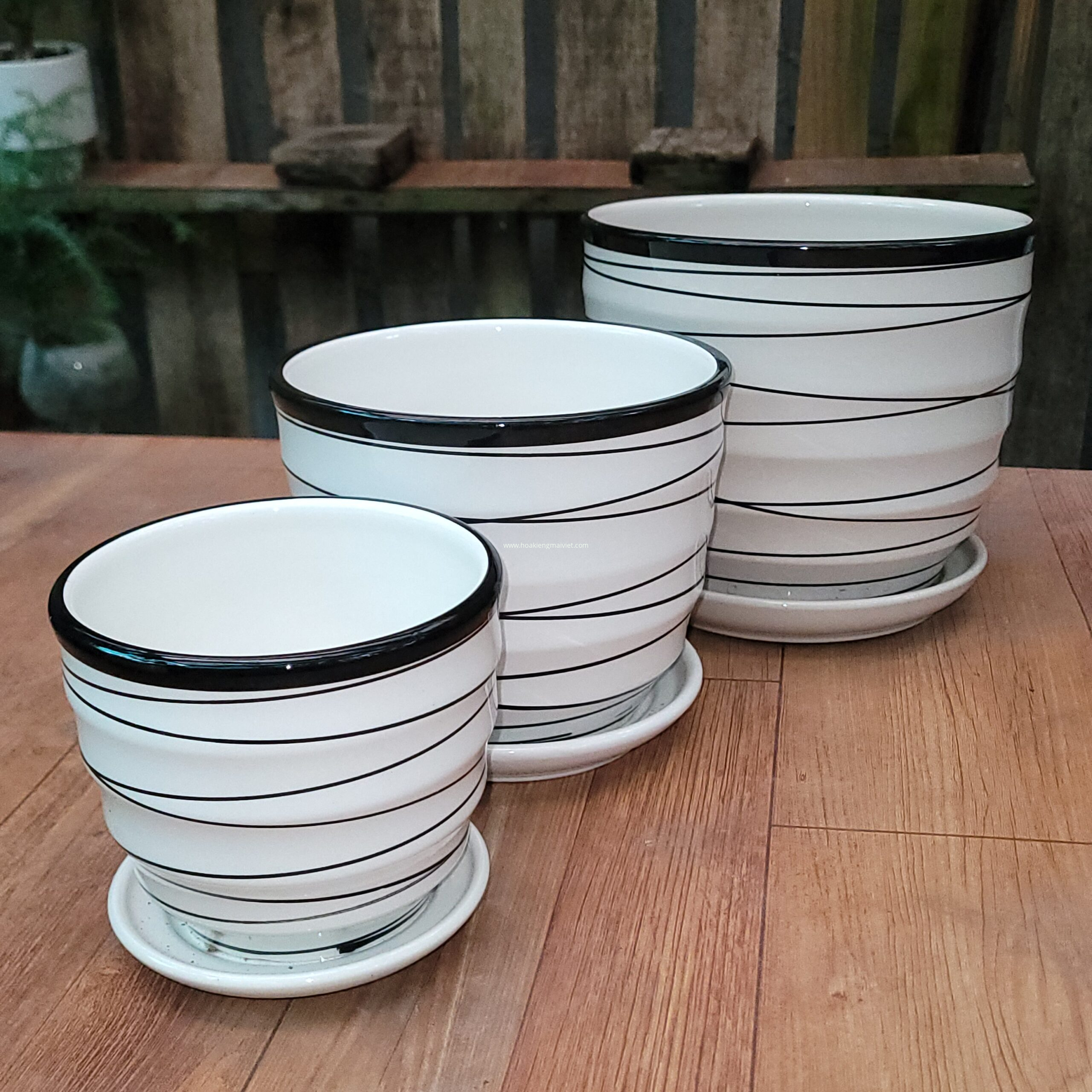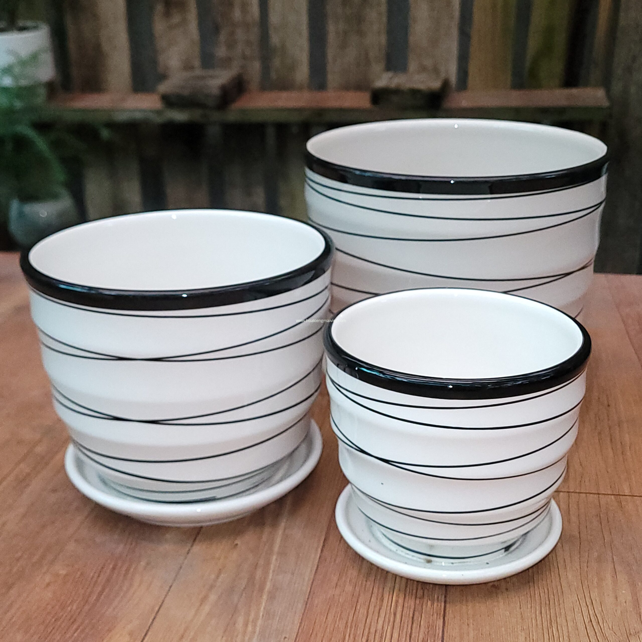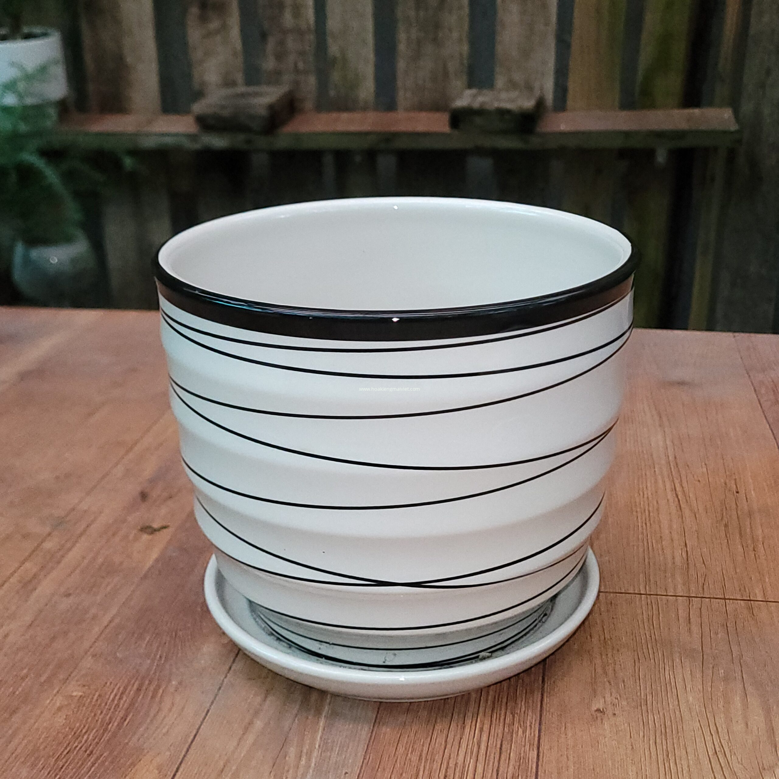 Chậu men sứ để bàn (họa tiết vân đen trắng) là lựa chọn hoàn hảo cho những ai yêu thích phong cách tối giản nhưng vẫn nổi bật. Chậu được chế tác từ sứ cao cấp, phủ lớp men bóng mịn, tạo độ bền và dễ vệ sinh. Họa tiết vân đen trắng được thiết kế tinh tế, mang lại cảm giác hài hòa giữa nét cổ điển và hiện đại, phù hợp với nhiều không gian nội thất như bàn làm việc, kệ sách, phòng khách hay quầy lễ tân.