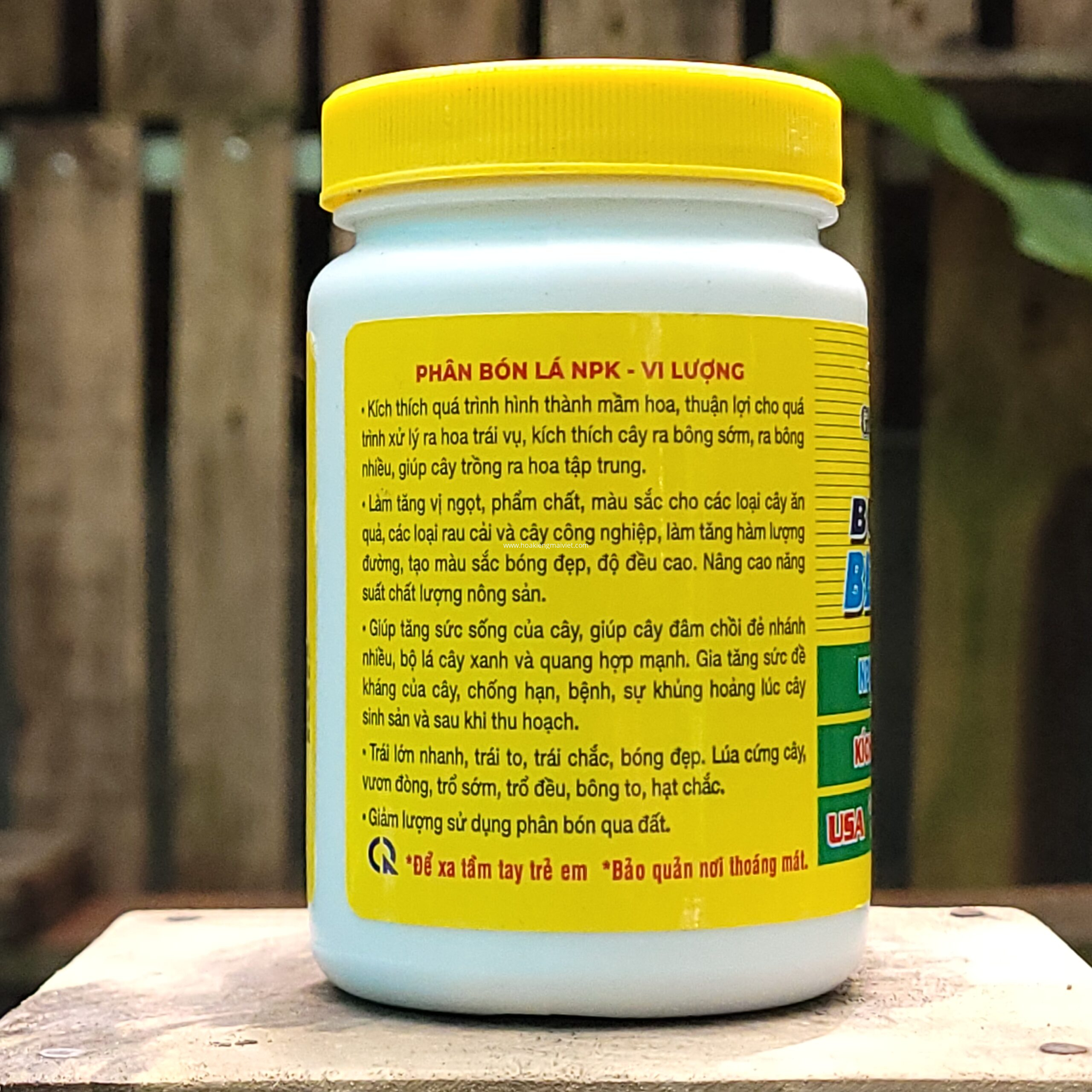 Phân bón lá BUD BLOSSOM (NPK 6-30-30+TE) giúp kích thích ra hoa đồng loạt, tăng tỷ lệ đậu quả, cải thiện phẩm chất nông sản và sức đề kháng cây. Phù hợp cho hoa kiểng, cây ăn trái, rau màu và cây công nghiệp.
